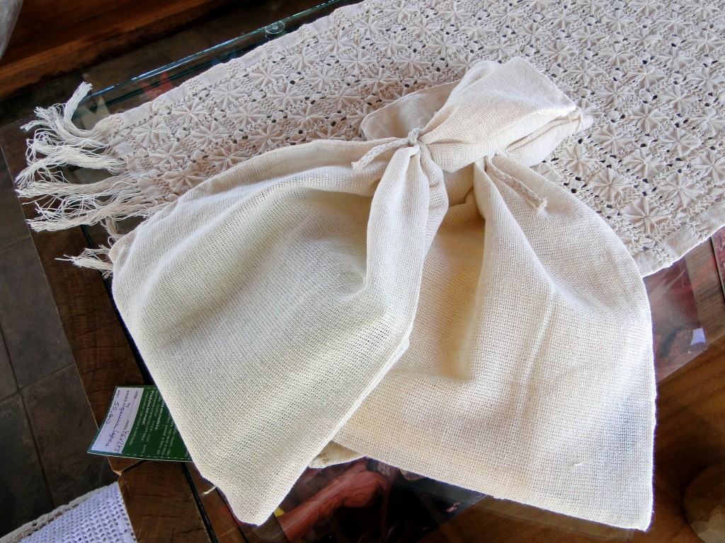 A Renata ficou encantada com o trabalho das bordadeiras de Rio de Contas. Imediatamente ela teve a idéia de fazer dos paninhos de prato um autêntico souvenir da Chapada Diamantina e presentear todo mundo da família com um deles.